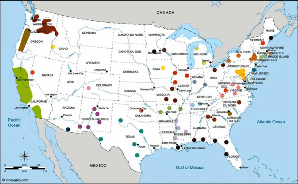 In the United States, American Viticultural Areas (AVAs) define geographic origin but impose few restrictions on grape varieties, yields, or winemaking techniques. A wine labelled with an AVA must source most of its grapes from that area, but stylistic decisions are largely left to the producer.